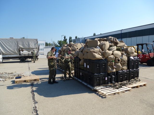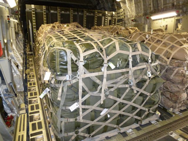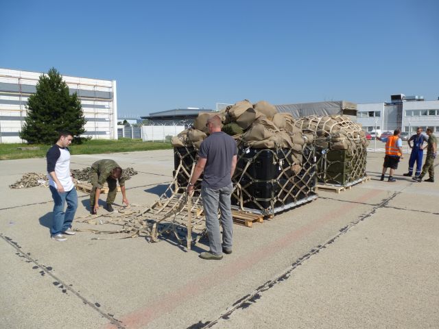 Zbrane, materiál a tzv. podaná batožina boli naložené na štandardné letecké palety 463L a pripravené na leteckú prepravu v zmysle U.S. leteckých predpisov na prepravu materiálu do operácií. Na prípravu zbraní, batožiny a materiálu, ako aj samostatnej nakládky sa zúčastnili dvaja príslušníci ozbrojených síl USA z vojenskej leteckej základne Ramstein (DEU).
